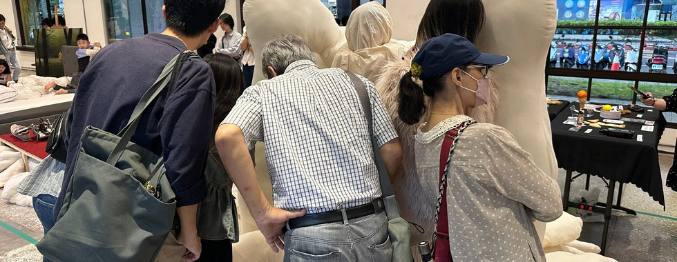 蠻多觀眾會問作品造型怎麼來,但其實是從之前的畫來的,畫的時候只是一直想著封閉無限輪迴的空間,但立體化放在展場時,變成可以容納其他人進來的空間,是一開始重未想到。做創作時想得很多但其實也沒那麼多。很多時候是觀眾的出現,讓我看見從未想像過的風景們。展場上聊聊/發限動/傳私訊心得/帶著手手奔跑+做瑜珈等等現場/雲端/遠處的支撐,感受到人間溫情和人性光輝,那畫面就像日式卡通,主角感化壞人時發出巨大光芒。